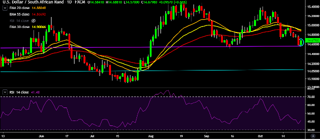 - USD/ZAR is currently trading around 14.68 levels.