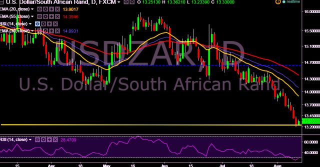 We prefer to take short position in USD/ZAR only below 13.24, stop loss 13.65 and target 13.00/ 12.82.