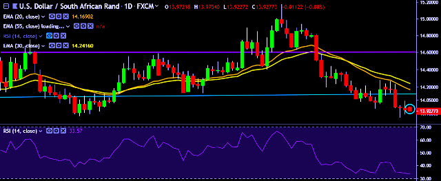- USD/ZAR is currently trading around 13.93 levels.