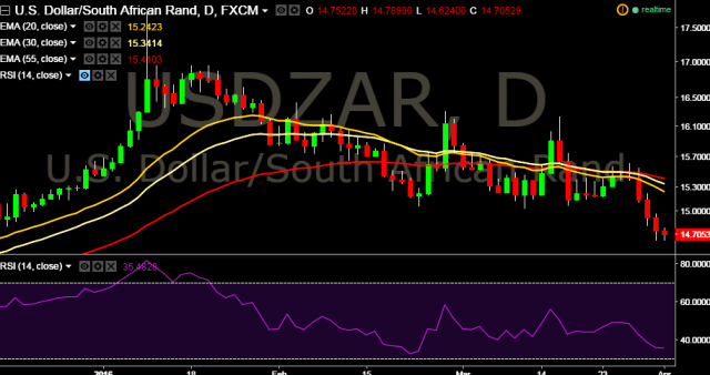 We prefer to take short position in USD/ZAR around 14.75, stop loss 14.96 and target 14.53 levels.