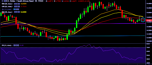 - USD/ZAR is currently trading around 14.65 levels.