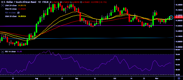 We prefer to take long position on USD/ZAR around 14.90, stop loss at 14.70 and target of 15.22.