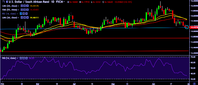 - USD/ZAR is currently trading around 14.14 levels.