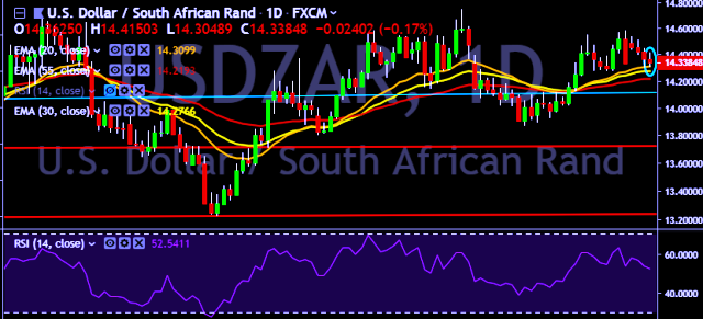 We prefer to take long position on USD/ZAR only above 14.40, stop loss at 14.22 and target of 14.75/14.94.