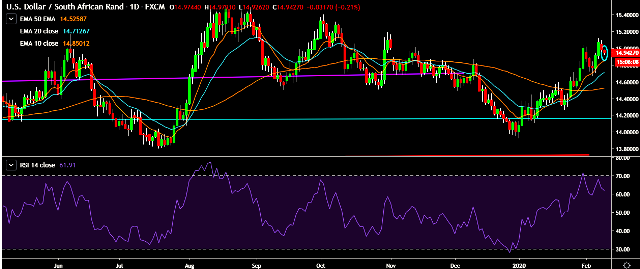 - USD/ZAR is currently trading around 14.94 levels.