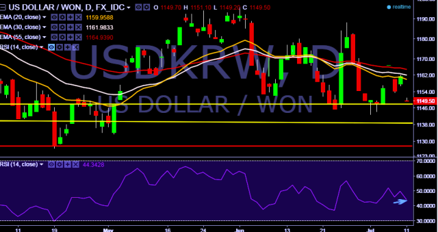 We prefer to take short position in USD/KRW only below 1142, stop loss 1152 and target 1127 respectively.