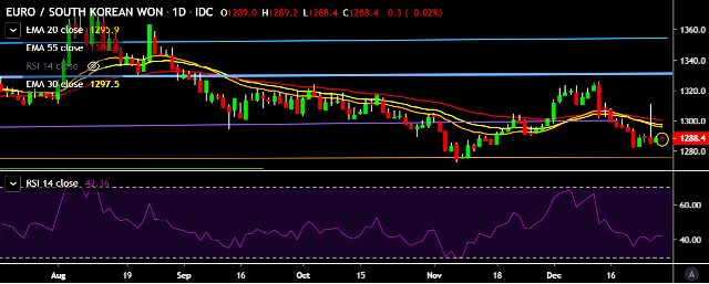 - EUR/KRW is currently trading around 1,288 mark.