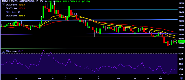 - EUR/KRW is currently trading around 1,284 mark.