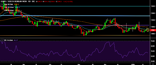 - EUR/KRW is currently trading around 1,291 mark.