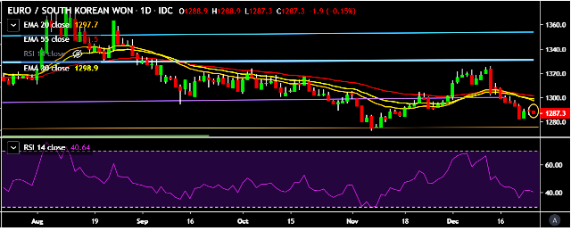 - EUR/KRW is currently trading around 1,287 mark.