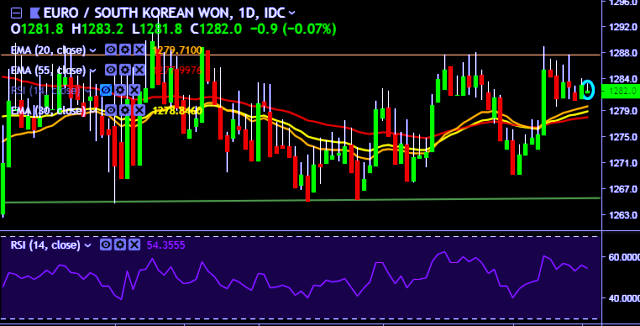 - EUR/KRW is currently trading around 1,281 mark.