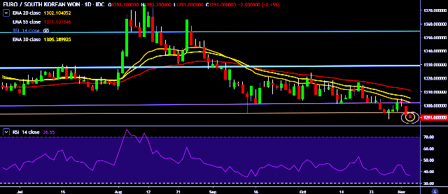 We prefer to take short position on EUR/KRW around 1,295, stop loss at 1,303 and target of 1,287/1,278.