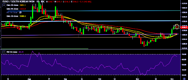 - EUR/KRW is currently trading around 1,315 mark.