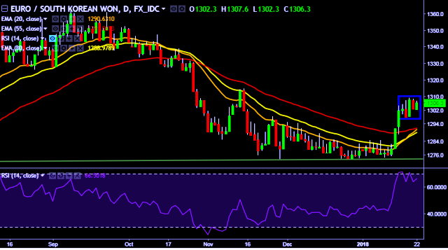 - EUR/KRW is currently trading around 1,306 mark.