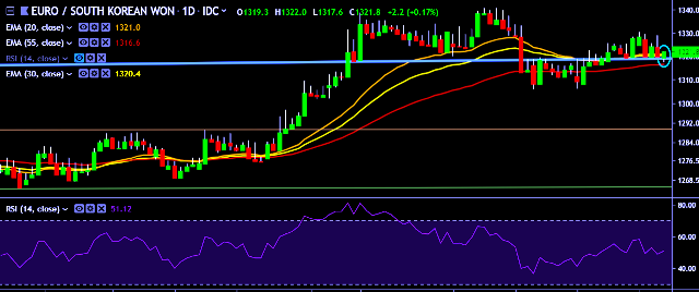 We prefer to take short position on EUR/KRW only below 1,317, stop loss 1,330 and target of 1,302/1,294.