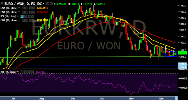 We prefer to take short position on EUR/KRW only below 1,278, stop loss at 1,296 and target of 1,264.