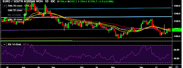 - EUR/KRW is currently trading around 1,297 mark.