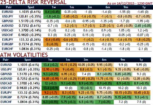 On the contrary, with spot FX flashes of EURUSD at 1.1025 we see delta risk reversal for 1 week contracts have shown slight recovery signals but long term (1M-1Y) put contracts are on higher demand.
