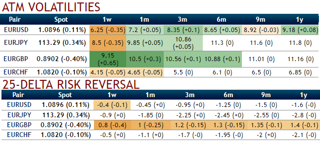 Rationale: The current IVs of 1W ATM contracts of EURUSD are crawling reluctantly at 6.25%, euro vols evidence a massive drop in recent times, as a result, the option premiums likely to shrink away on account of time decay.
