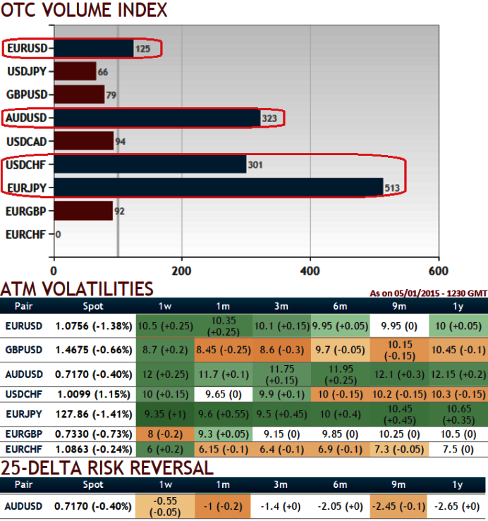 Whereas volume index for EURCHF and GBPUSD in contrast evidence tepid volatilities implied in the OTC market.