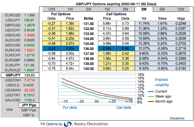 While on trading grounds, buy GBPJPY 2M ATM straddle vs Sell GBPUSD 2M ATM straddle, equal notionals. Courtesy: Sentry, Lloyds & JPM