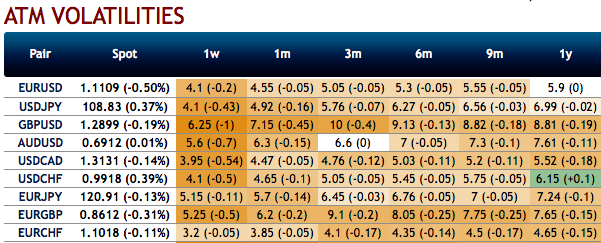 The above nutshell exhibits IVs of G7 FX bloc on lower side. Considering the prevailing sideway trend of cable, the underlying movement with lower IVs is interpreted as a conducive environment for writing overpriced OTM options. While the underlying movement with lower IVs can also offer economical OTM option pricing.