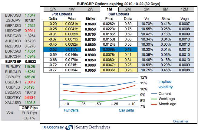 The pound has accelerated higher overnight – extending the recovery after setting new 3-year lows at the beginning of this month, now up 5%. The move triggered by comments from outgoing EU Commission President Juncker (his term finishes on 31st October) commented that a no-deal Brexit would have “catastrophic consequences”, that he was doing “everything to get a deal” and "if the objectives are met, all of them, then we don't need the backstop". While the comments continue to fuel optimism, there is still a long way to go and it would only take a negative comment to knock the pound back in the current less liquid environment.