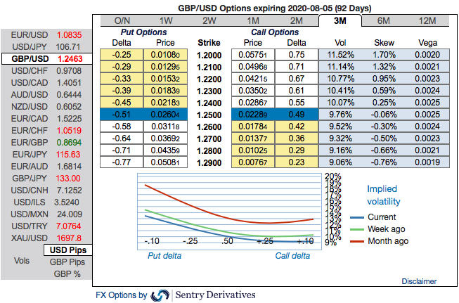 Please observe 3m GBP skews that has stretched towards negative territory, hedgers have shown interests for bearish risks as you could see more bids for OTM Put strikes up to 1.20.