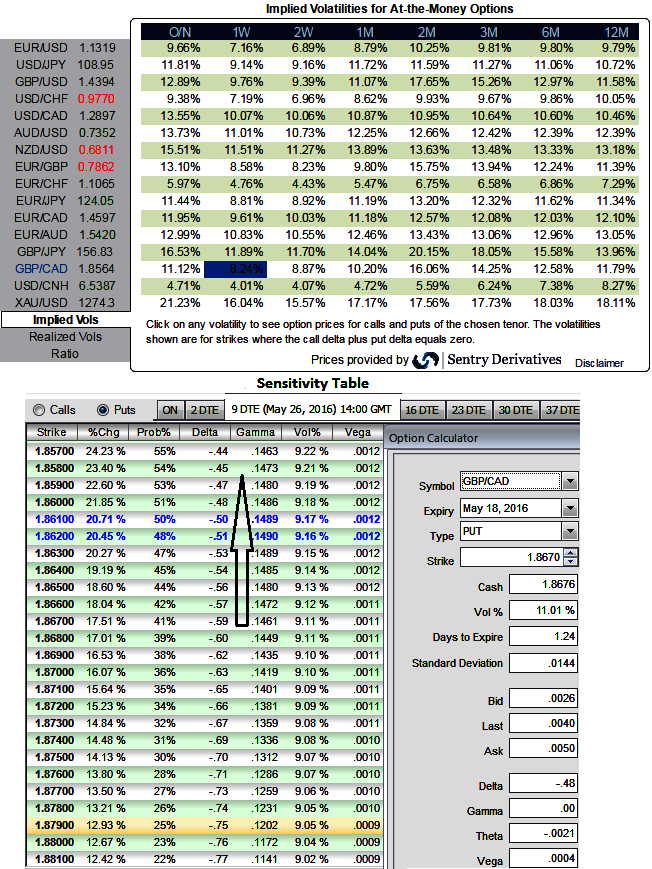 2m GBPCAD ATM implied volatilities have been spiking above 15.38% which is a good news for option holders, but those who haven’t hedged sterling’s uncertainty against other major crosses than USD on event risks (UK referendum) which is almost a month away from now has to have a big reason to worry whether spot FX would move in sync with these vols or not.