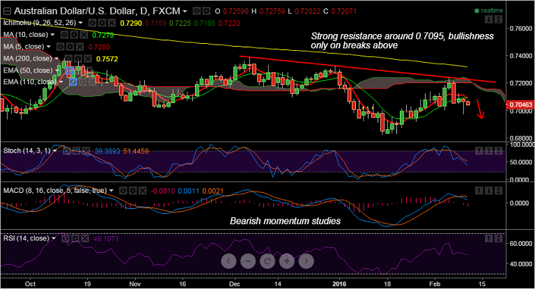 - We see strong resistance for the pair around 0.7095 levels - 0.7095 Feb 9th highs, 0.7094 10-DMA, 0.7093 5-DMA.