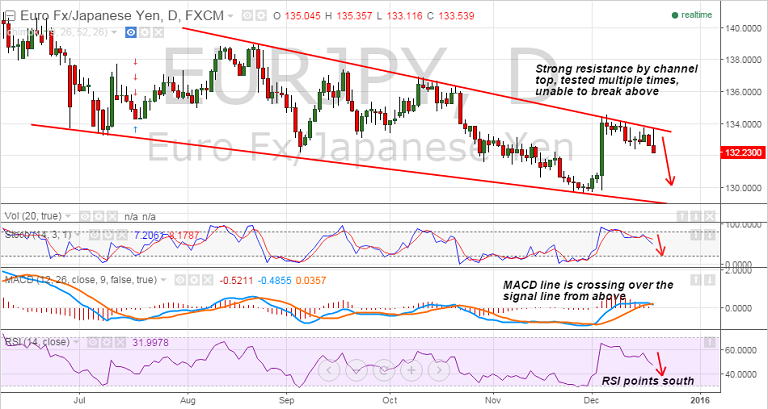 - Techs for the pair point south,falling wedge formation on daily charts, with strong resistance by wedge top around 133.80.