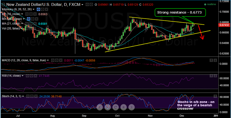 Strong trendline resistance for NZD/USD is seen at 0.6773, pair has been rejected at highs by 0.6782 in Thursday's trade.