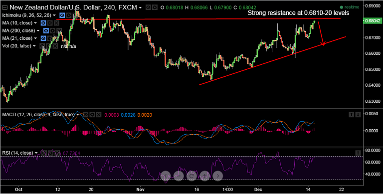 NZD/USD edging higher as USD retreats in Asia, the pair broke strong trendline resistance at 0.6780, further gains likely on breaks above 0.6820.