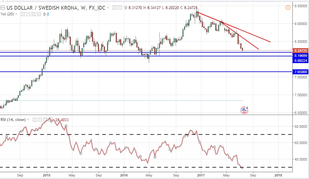 Swedish Krona has already strengthened from its bottom in December around 9.43 per dollar to 8.25 per dollar as of today and we at FxWirePro believe that further downside is very much likely and we expect the Krona to strengthen towards 7.65 per dollar.