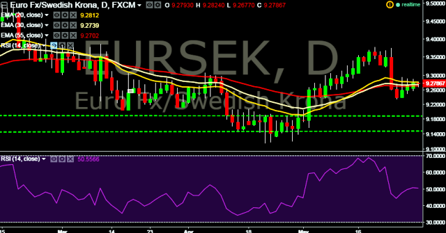 We prefer to take long position in EUR/SEK around 9.27, stop loss 9.25 and target of 9.2953 marks.