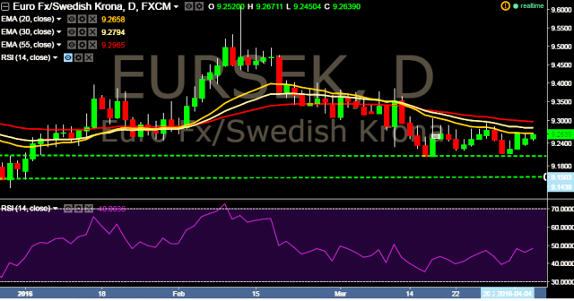 We prefer to take short position in EUR/SEK around 9.2650, stop loss 9.2750 and target 9.2050 marks.