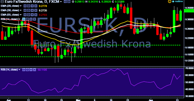 We prefer to take long position in EUR/SEK around 9.33, stop loss 9.3039 and target of 9.3638 marks.