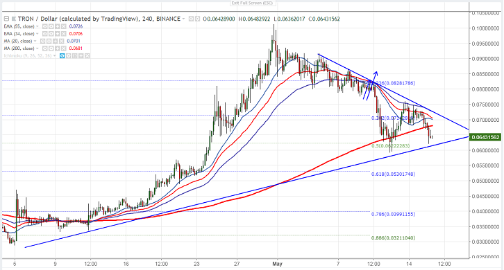 - Technically, Tron has broken major near term support 0.0600 (trend line support) and any convincing break below will take to next level till 0.053/0.0700.