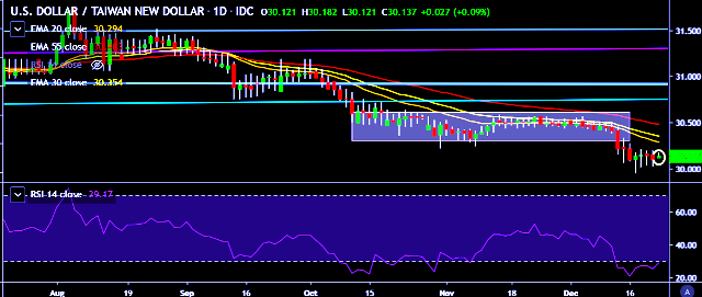 We prefer to take long position on USD/TWD only above 30.22, stop loss at 30.02 and target of 30.40/30.70.