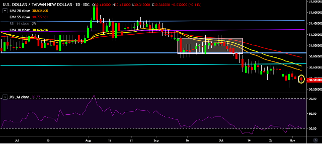 We prefer to take short position on USD/TWD around 30.40, stop loss 30.70 and target of 29.84/29.70 mark.