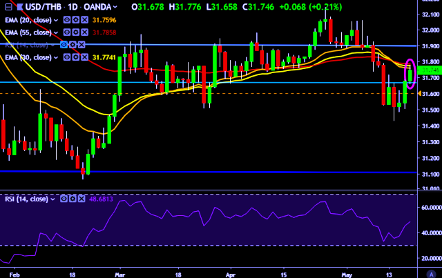 We prefer to take long position on USD/THB around 31.70, stop loss at 31.60 and target of 31.92.