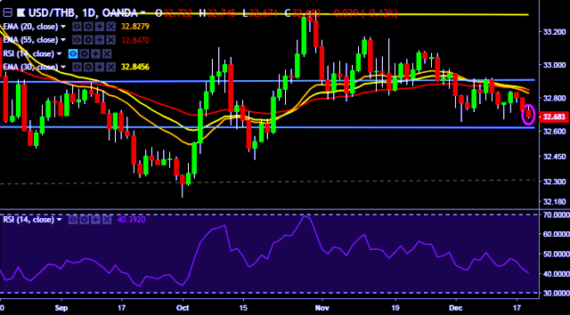 We prefer to take short position on USD/THB around 32.70, stop loss at 32.83 and target of 32.57/32.42.
