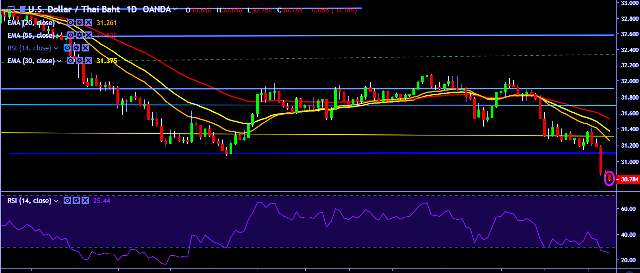 We prefer to take short position on USD/THB around 30.80, stop loss at 31.02 and target of 30.50/30.18.