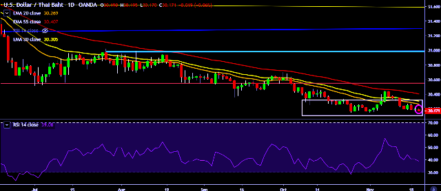 We prefer to go short on USD/THB around 30.17, stop loss at 30.25 and target of 30.02/29.84.