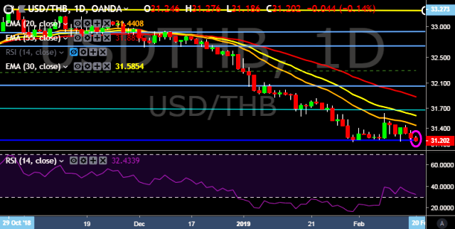 We prefer to take short position on USD/THB only below 31.18, stop loss at 31.40 and target of 30.94 mark.
