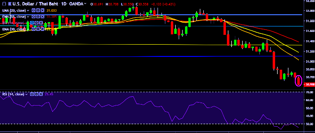 - USD/THB is currently trading around 30.57 marks.