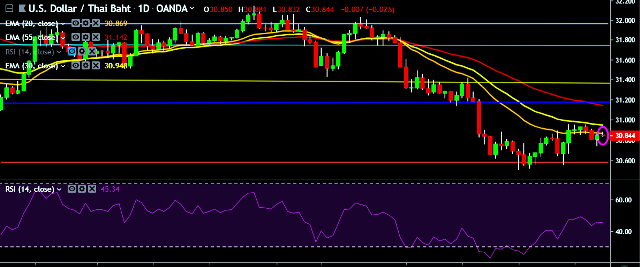 - USD/THB is currently trading around 30.84 marks.