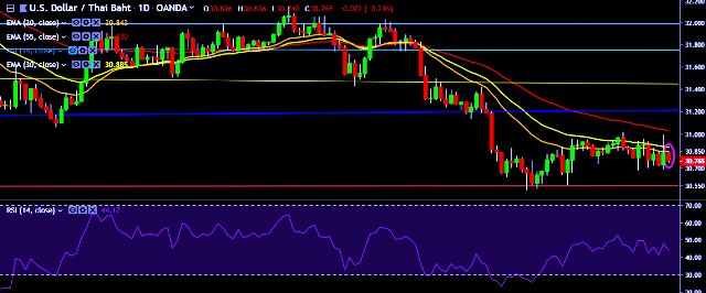 We prefer to take short position on USD/THB only below 30.70, stop loss at 30.90 and target of 30.42.