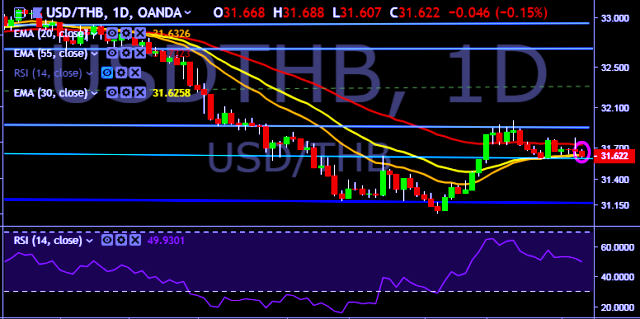 We prefer to take short position on USD/THB only below 31.58, stop loss 31.70 and target of 31.42 mark.