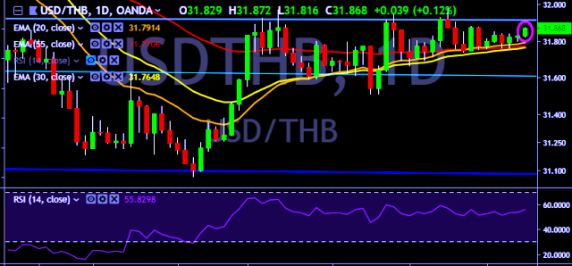 We prefer to take long position on USD/THB only above 31.92, stop loss at 31.70 and target of 32.10.
